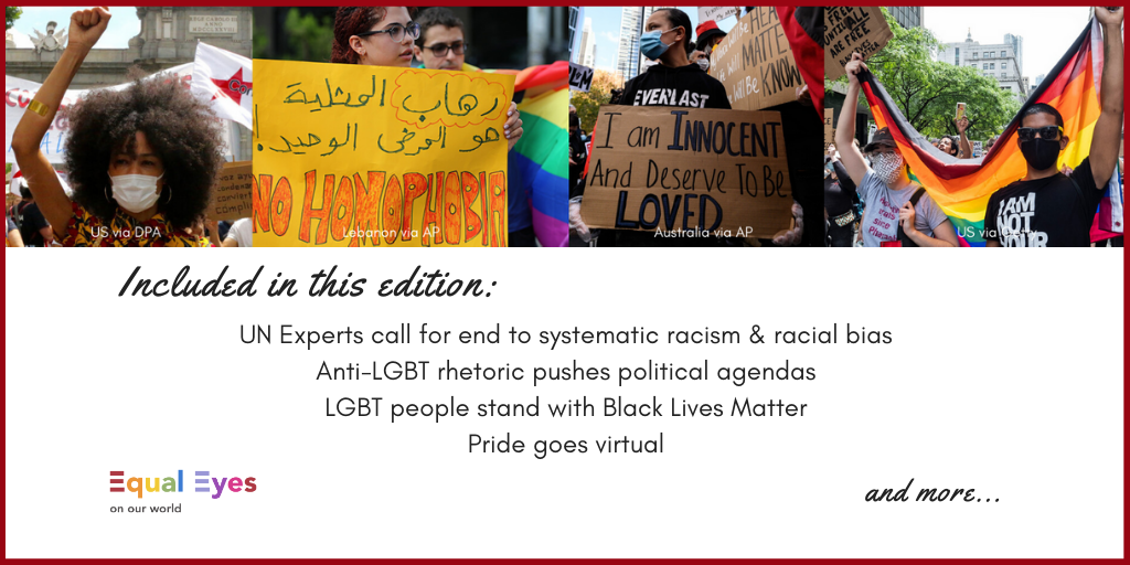 From the UN: The UN Independent Expert on sexual orientation and gender identity, Victor Madrigal-Borloz, joined over 45 other UN Experts, Special Rapporteurs, and Working Groups to release a joint statement to condemn state-sponsored racial violence and the killings of Black people at the hands of police in the US. They called on the US government to address systematic racism and racial bias in the country’s criminal justice system. The experts urged international leaders to use this moment to address structural forms of racial and ethnic injustice in their own nations. They noted: