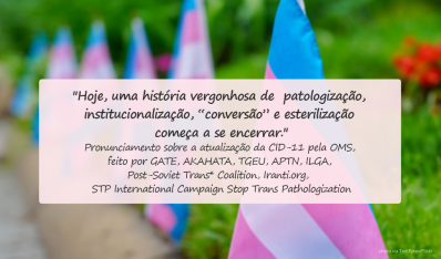Pronunciamento sobre a atualização da CID-11 pela OMS, feito por GATE, AKAHATA, TGEU, APTN, ILGA, Post-Soviet Trans* Coalition, Iranti.org, STP International Campaign Stop Trans Pathologization